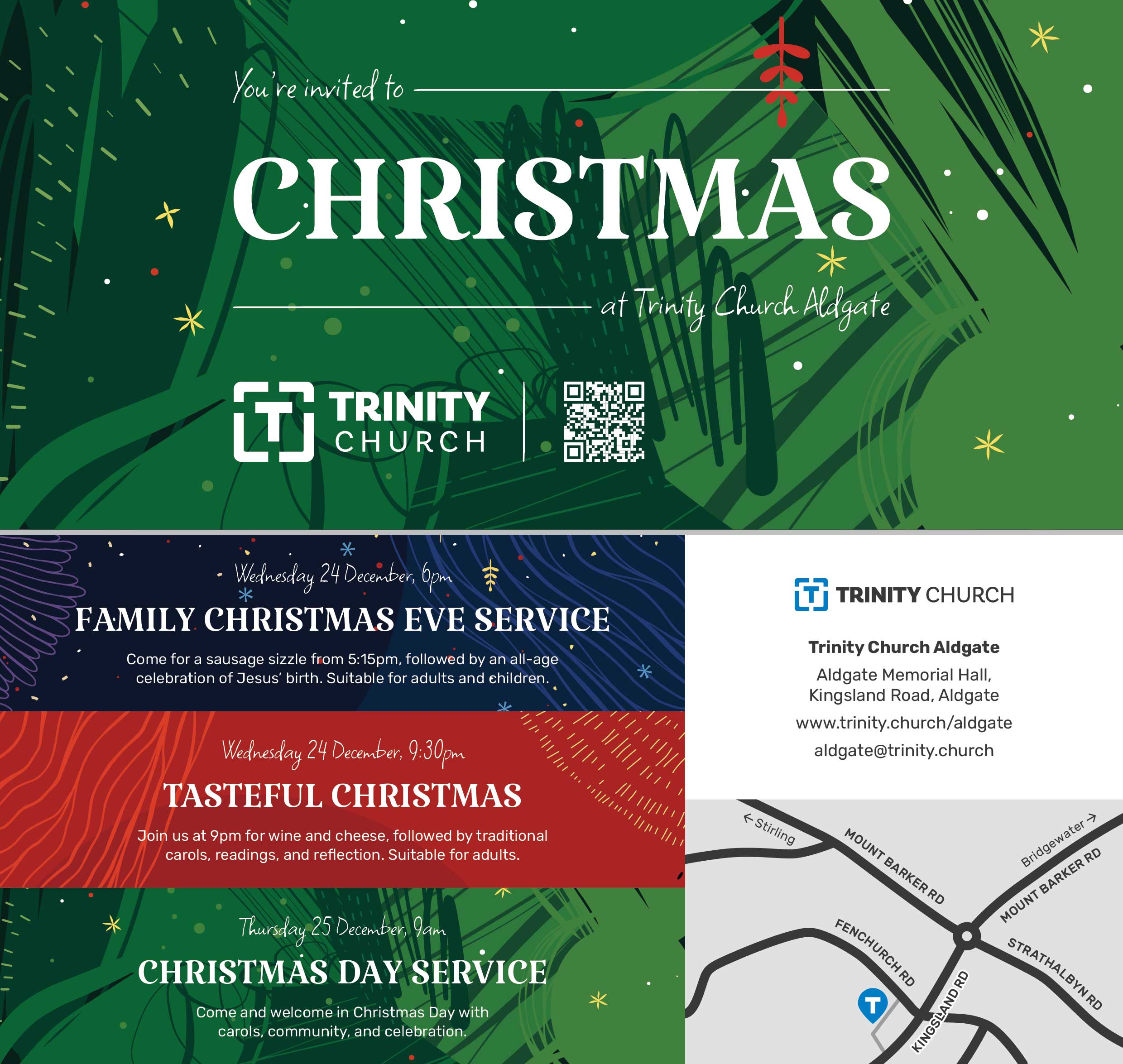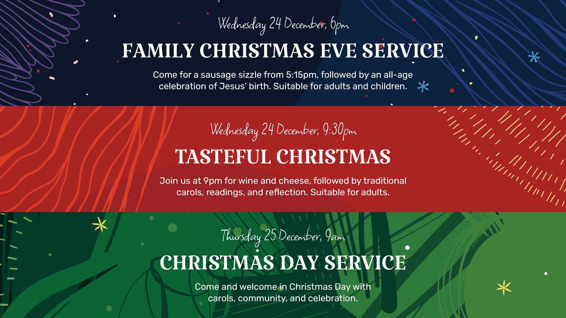 Come for a sausage sizzle from 5:15pm, followed by an all-age celebration of Jesus’ birth. Suitable for adults and children.